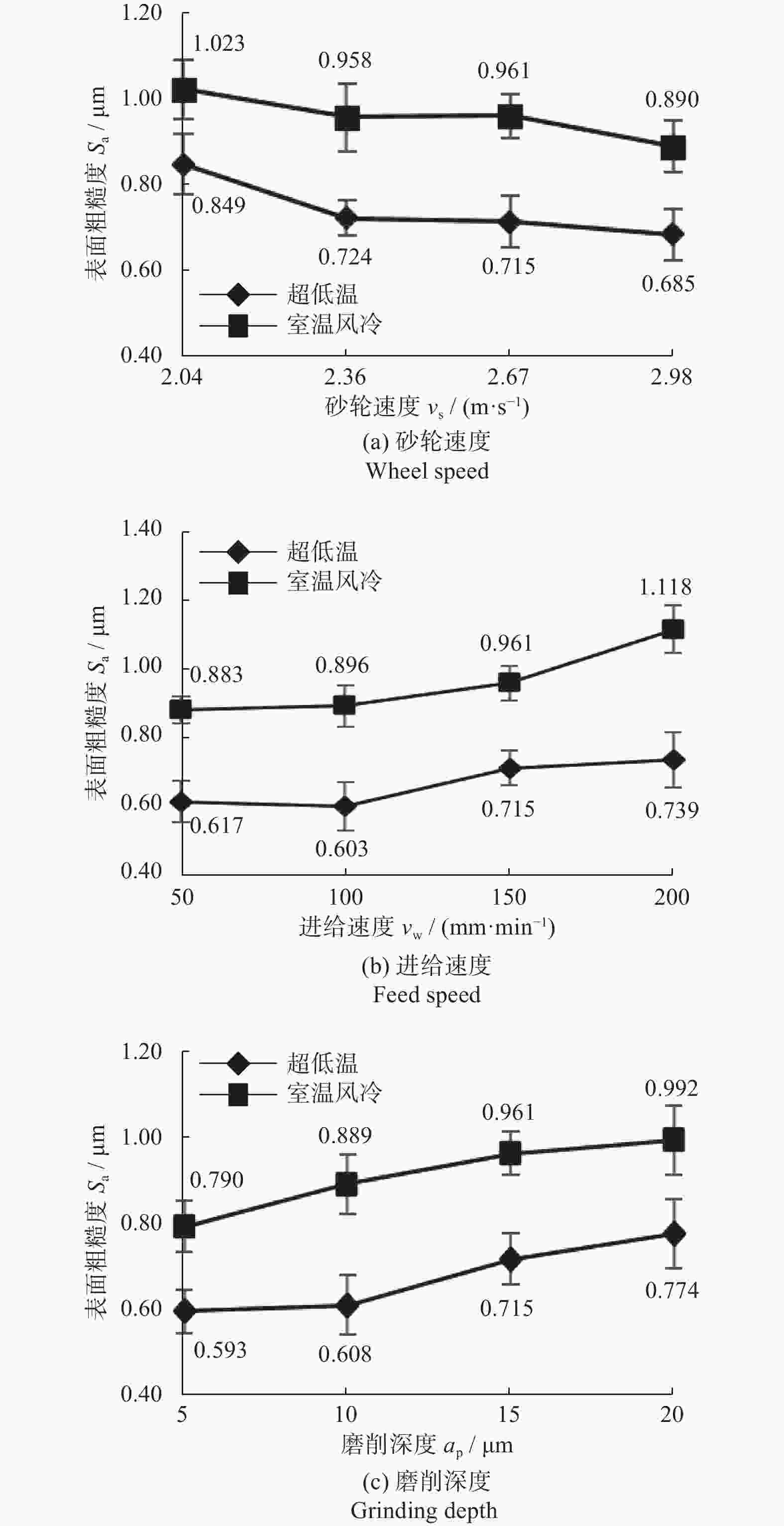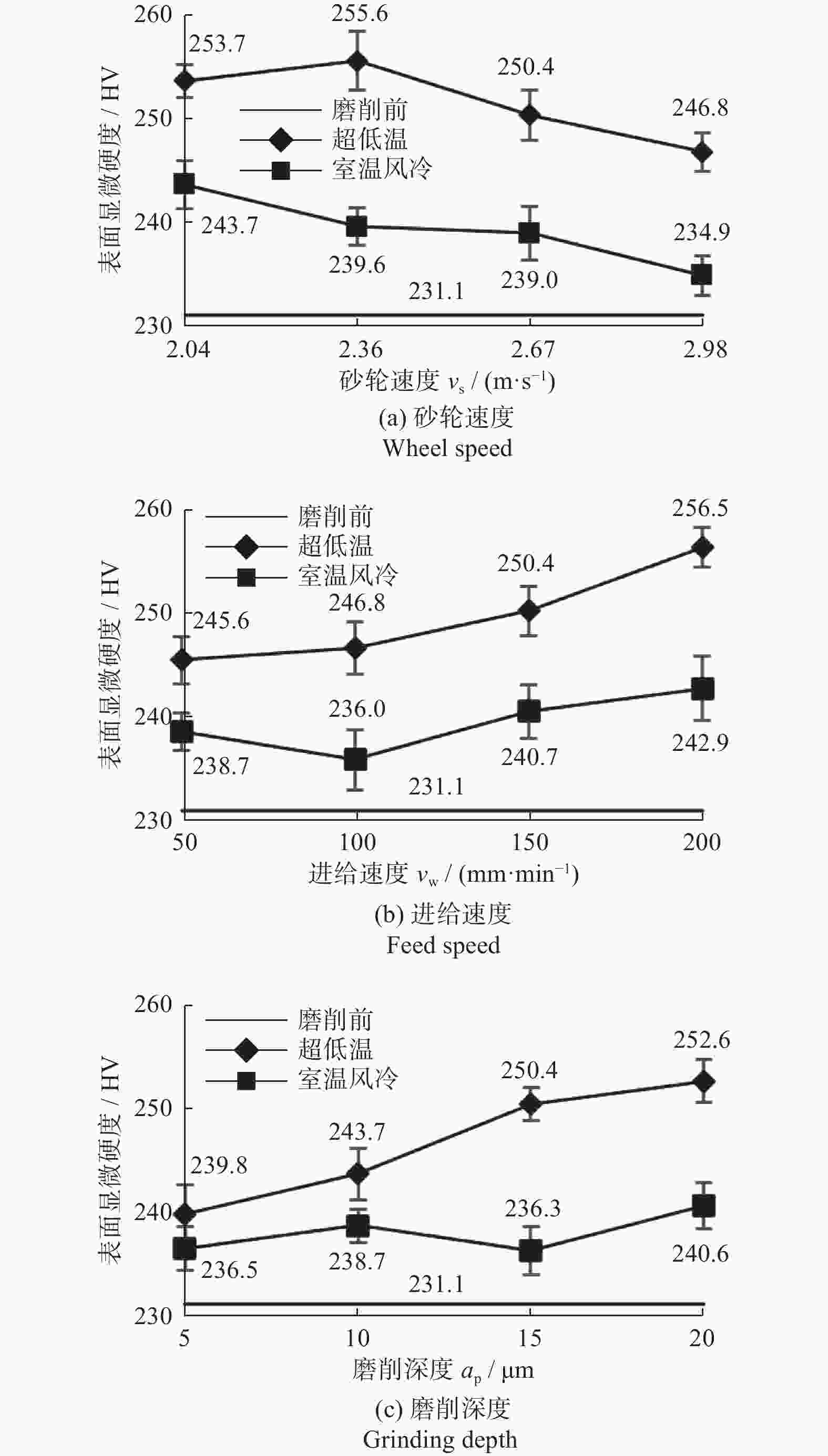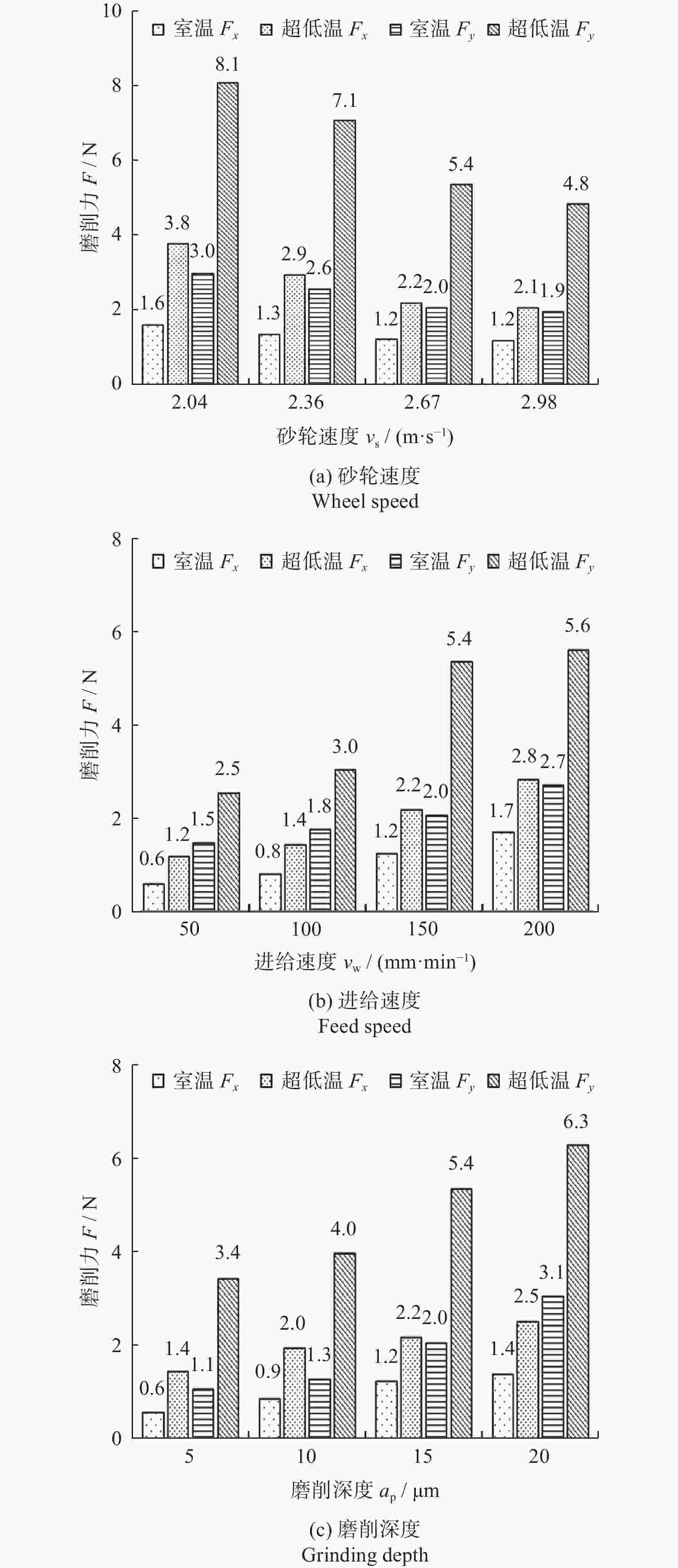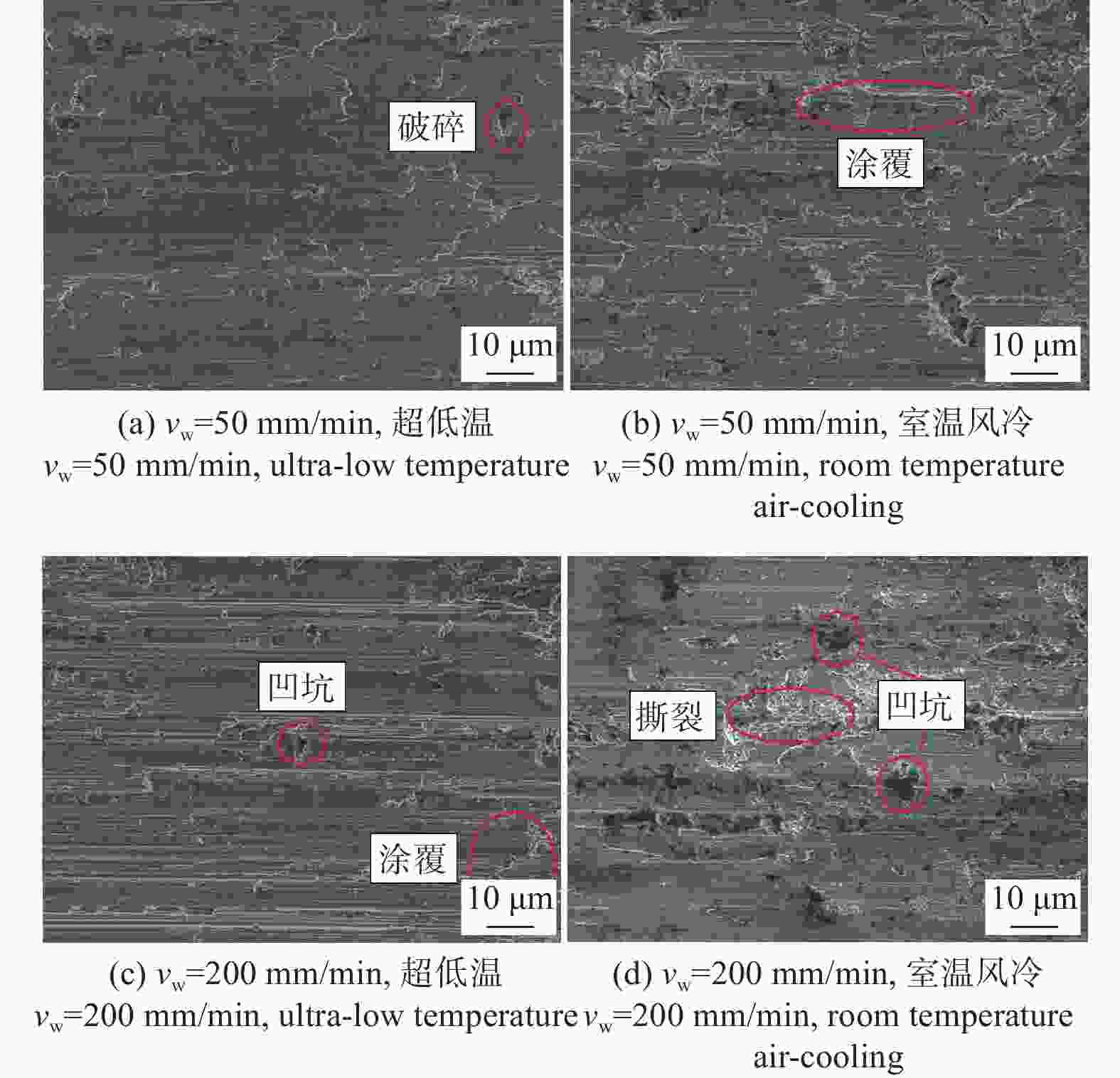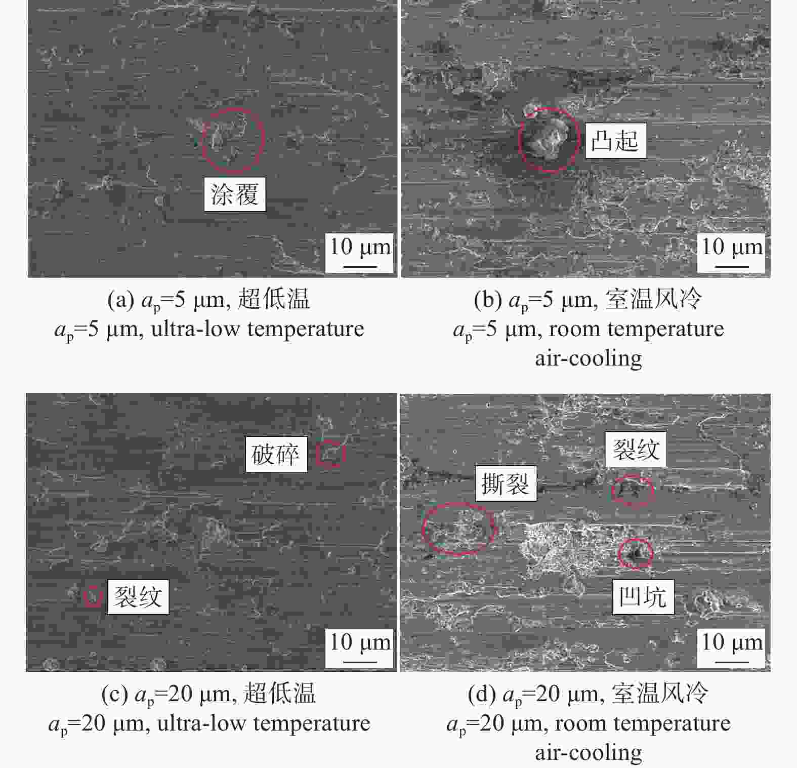 摘要: SiCp/Al作为一种典型的颗粒增强金属基复合材料,凭借其优异的综合性能在航空航天、精密电子等领域得到了广泛应用,但其物理特性与可加工性能仍有提升空间。针对20%体积分数的SiCp/Al复合材料进行液氮超低温与室温风冷磨削实验,对比2种冷却介质下工艺参数对其磨削力、表面损伤的影响,并分析其表面粗糙度、残余应力和显微硬度的变化规律。结果表明:SiCp/Al的超低温磨削力和表面完整性变化趋势与室温风冷磨削时的相近;超低温增加了铝基体的致密性与均匀性,提高了材料整体和界面结合强度,使其磨削力较室温风冷时的更大,且能有效抑制铝基体和SiC颗粒的磨削损伤,降低材料表面粗糙度,提高材料的残余压应力和硬度,从而综合提升材料表面质量。Abstract: